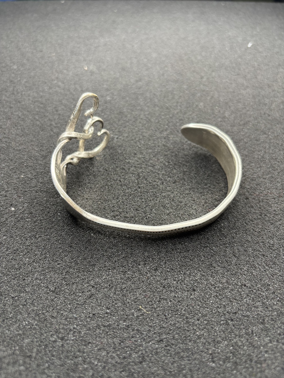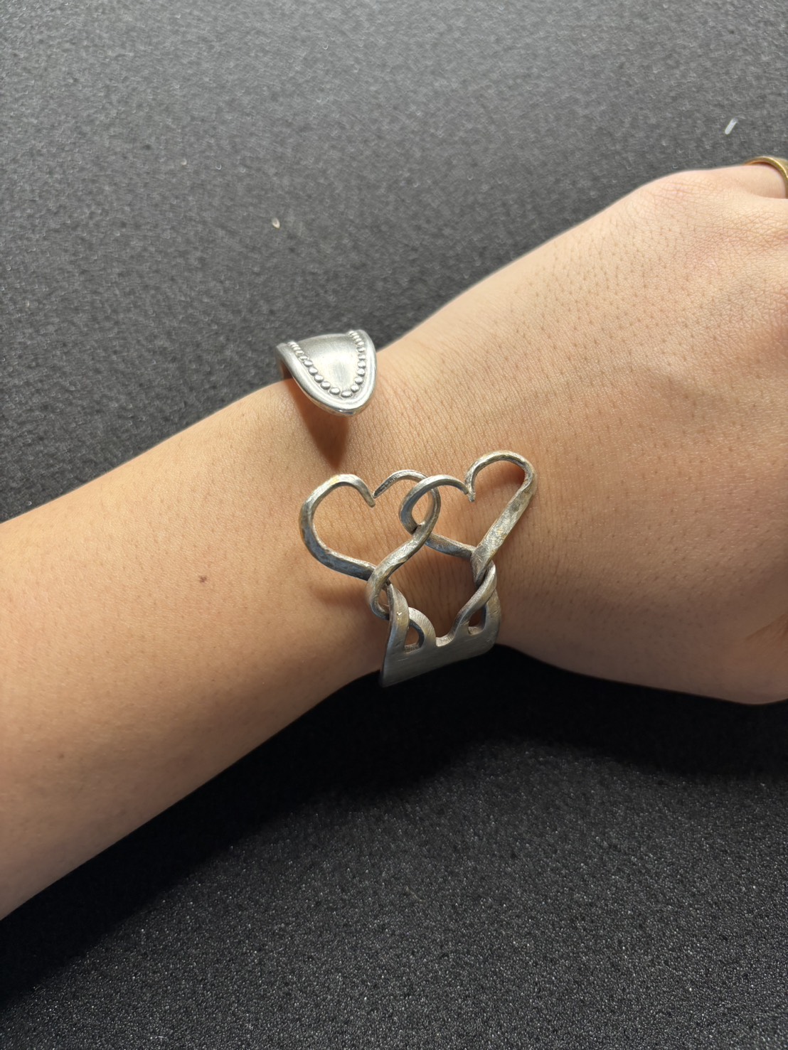フォークの先端をまげてハートの形にして作ったバングルです!